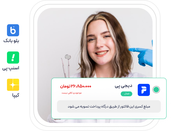 اگه میخواید پول خدمات دندانپزشکیتون رو فوری در حساب بانکی تون داشته باشید کافیه یه حساب بلو داشته باشید که بدون مراجعه به بانک و آنلاین در ۵ دقیقه انجام میشه.